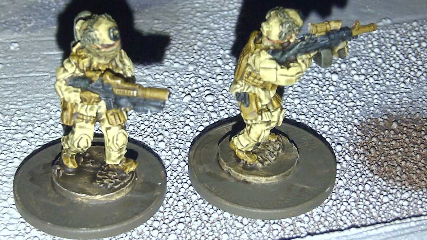 Some Elhiem Navy Seals. The DEVGRP green camo came out surprisingly well, but the coyote equipment is way to dark.Which of course I used on the weapons. Next time the weapons will get a sand color.