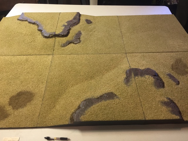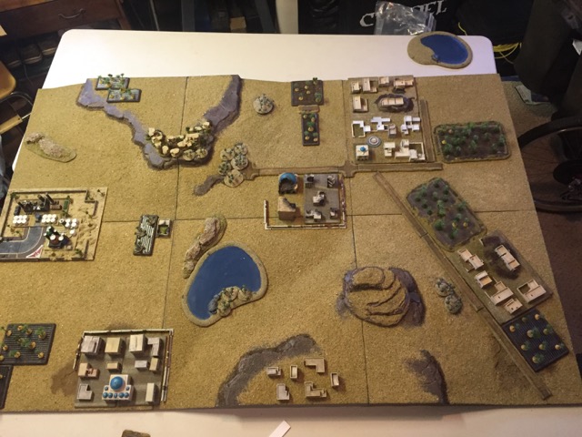 This was one of the tables snatched off eBay. I never did anything what it. While working on the City Table I got the bug to finish this one too. This time I stole the table idea from Luke’s youtube channel. I did not go totally desert on this one. This battle board needed to pull triple duty. warmaster, force on force, epic, maybe Africa/Sudan